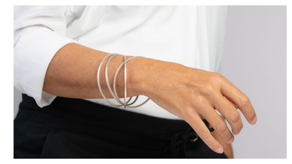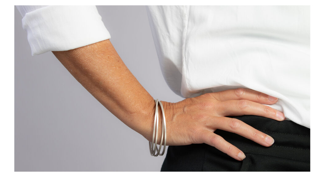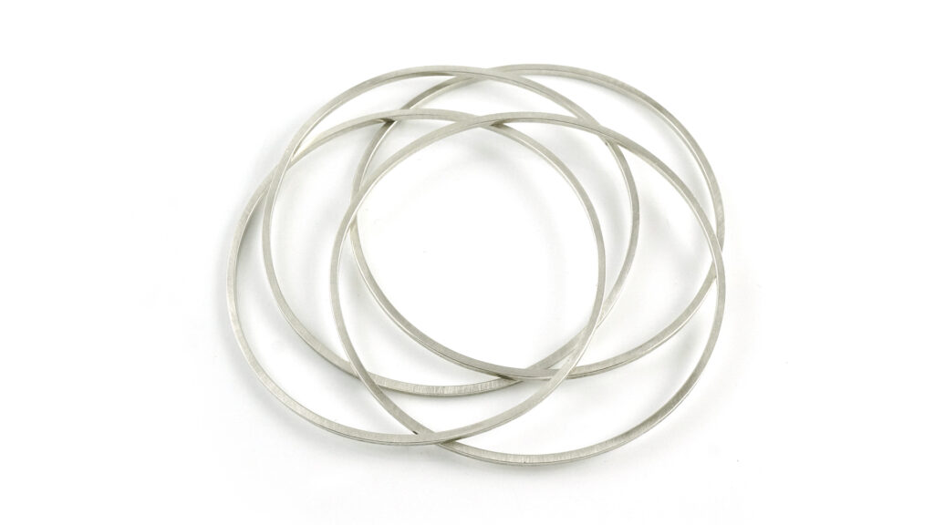 … ein Klassiker! Vier ineinander gearbeitete Reifen ergeben einen Klimperarmreif.