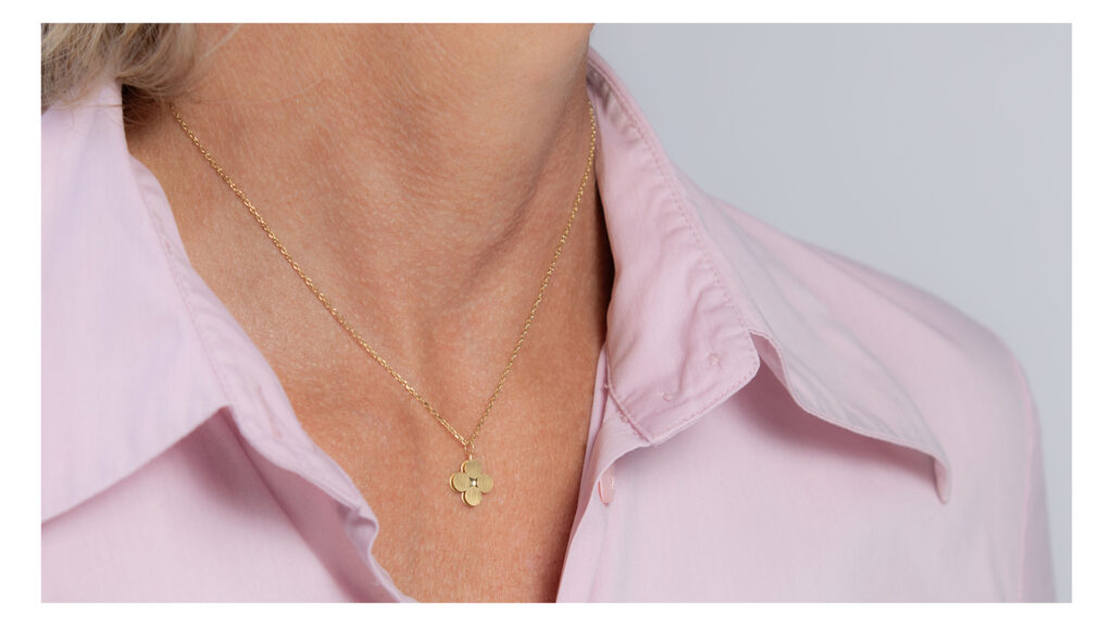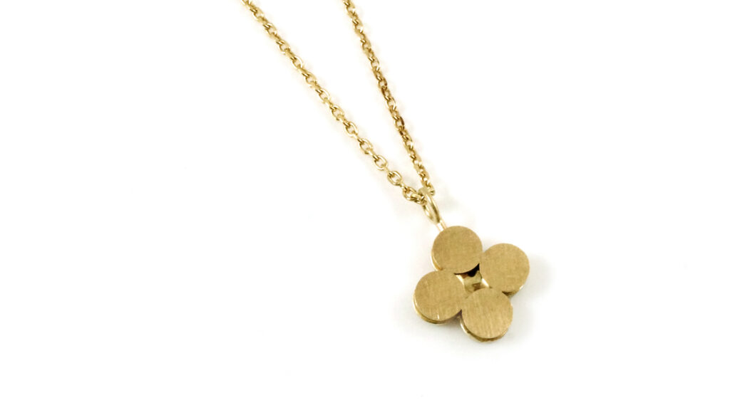Ein stilisiertes Kleeblatt dessen Mitte für Irritation sorgt: was dort glitzert ist das Lichtspiel eines goldenen Hohlspiegels.