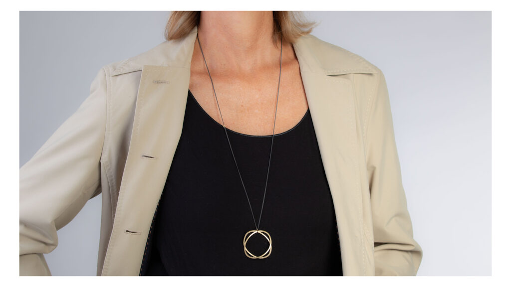 Eine lange Kette mit zwei Elementen, die sich ganz leicht und zart berühren.