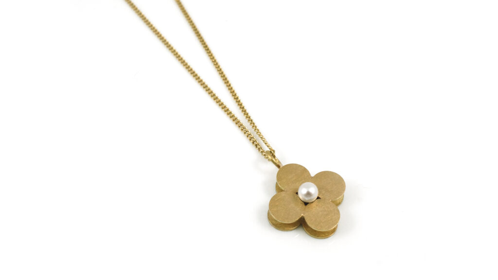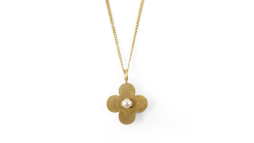 Ein stilisiertes Kleeblatt als kleiner Glücksbringer mit einer sinnlichen Perle im Zentrum. Entzückend.