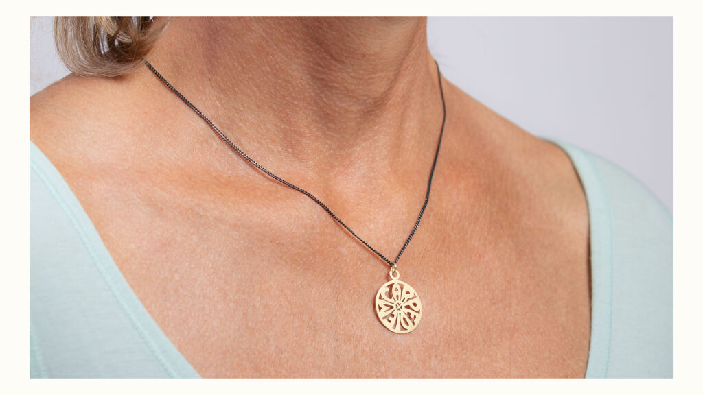 Wie ein Mandala zieren Namen und/oder Ziffern einen edlen, personalisierten Anhänger. Eine sehr persönliche Kette, alltagstauglich und passend für alle Anlässe, ob Geburtstag, Kommunion, Konfirmation, Taufe, Hochzeitstag ... In dieser Kette stehen die Namen meiner Töchter ANOUK ELLA. So sind sie immer bei mir....