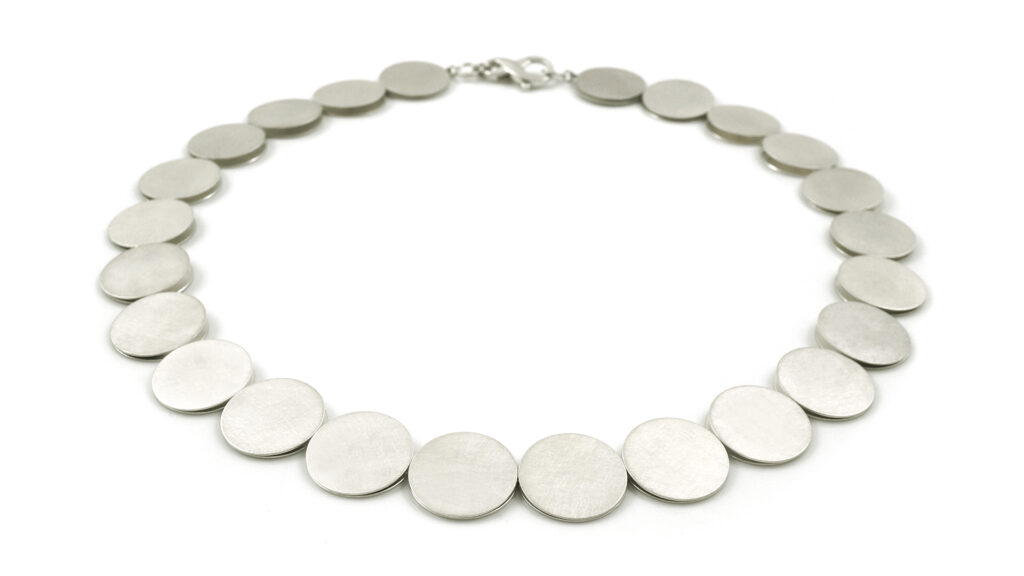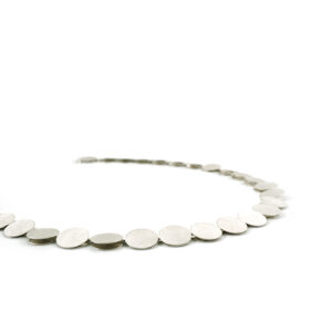 Silberne Kreise, die sich anmutig auf die Haut schmiegen und das Konzept einer Perlenkette aufnehmen. Schlicht und schön. Ich habe sie zu meiner Hochzeit angefertigt. Daher der Name...