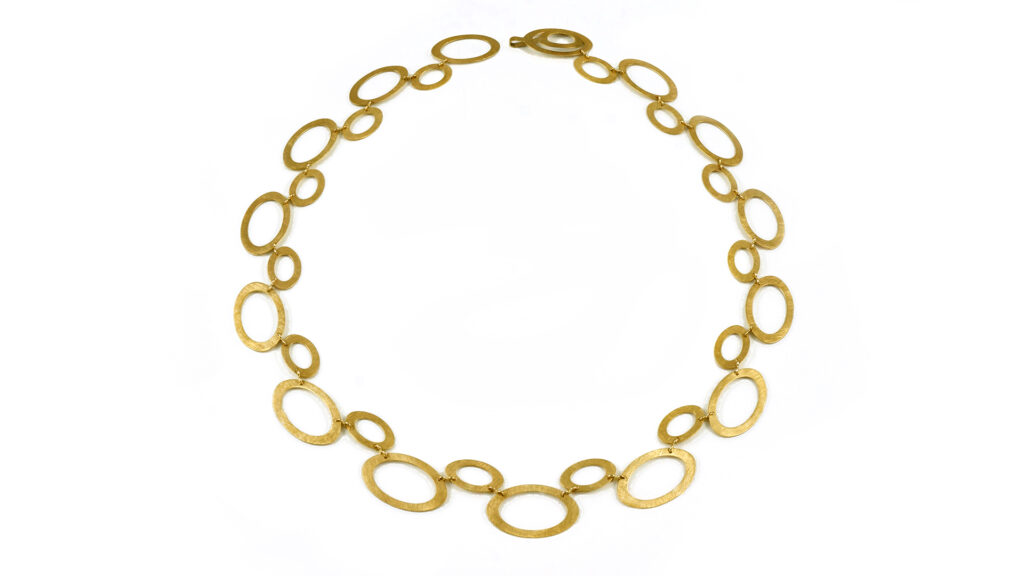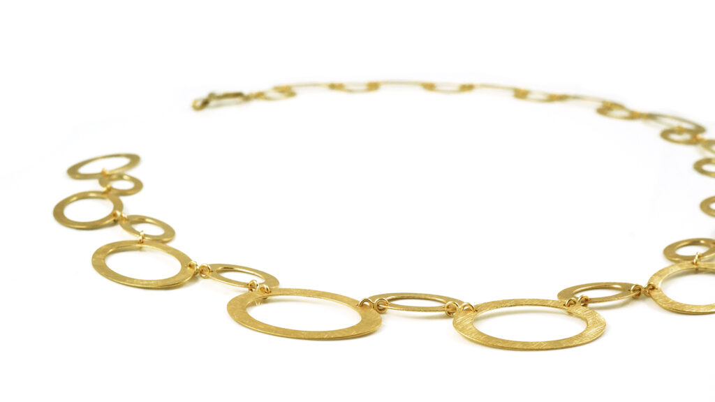 Ovale Kreise, die sich flach auf die Haut schmiegen und einer Skizze gleichen. Einfach schön.