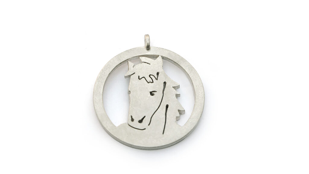 Ein Talismann aus Silber für die kleinen Pferdefreunde. Der Anhänger entspricht der Größe einer 20ct-Münze.