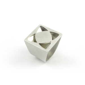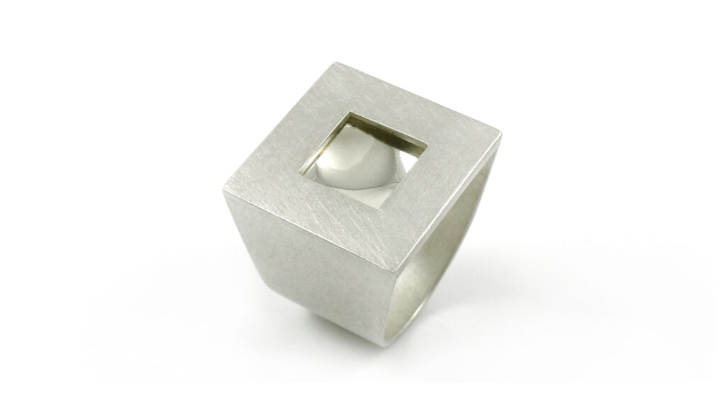 Die Welt steht Kopf - das Phänomen des Hohlspiegels ist bei diesem Ring Blickfang, Irritation und zentrales Gestaltungselement.