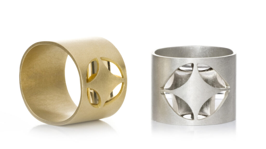 Der Reiz dieser Spiegelringe liegt in der Veränderung und Irritation. Hier ist kein funkelnder Stein die Attraktion sondern eine polierte Fläche im Hintergrund. Form follows function - oval sind die Ringe, damit der "Spiegel" seinen Raum bekommt.